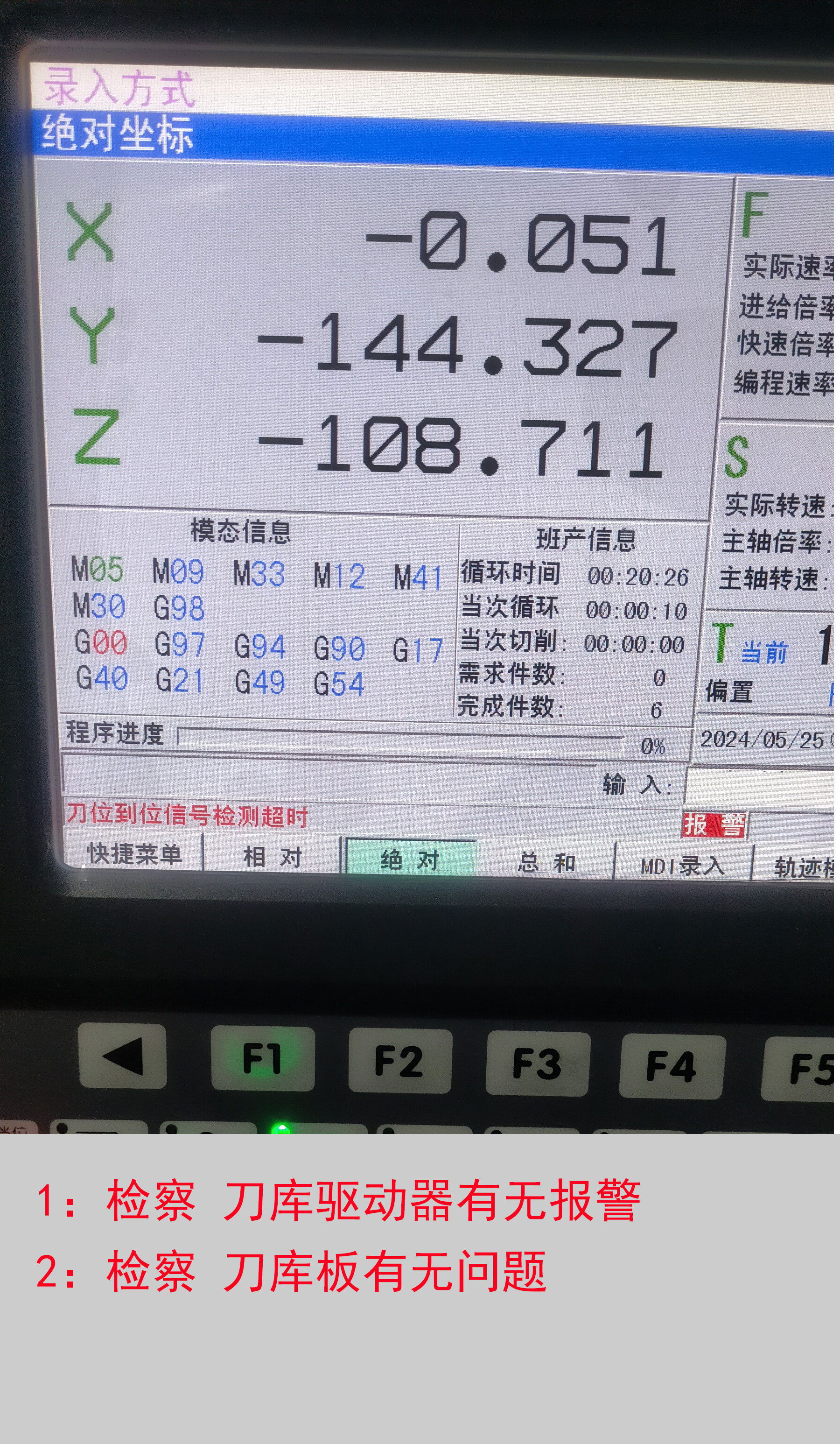 刀库前进超时